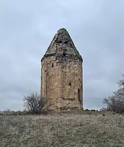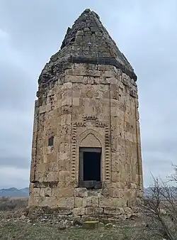 The mausoleum has a rectangular shape with dimensions of 2,95 x 3,30 meters. Entry of the sepulcher is located in the western part. The width of the door is 76 cm, and the height is 88 cm. According to the rules of Islam, the entry to the mausoleum shouldn't exceed 1.20 meters, so that the entering person would bow in respect to the memory of the deceased. In the Middle Ages, such mausoleums were built on graves of feudal nobility and well-known people. At present, the upper side of the mausoleum is slightly destroyed. The top of the mausoleum, which was built in the form of an eight-edged prism, is complemented with a roof in the form of a pyramid.[2]