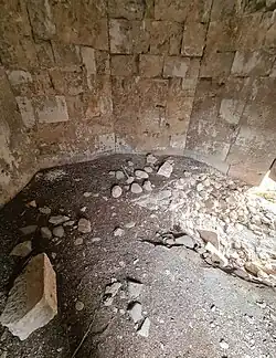 Its walls are thoroughly revetted with sharpened stones from inside and outside. But its sepulcher is quadrangular from the inner side. The door of the mausoleum is located at a height of 1.8 meters. The inner arch has a spherical, but the external a pyramidal form. Such types of constructions are typical for many monuments of Azerbaijan.