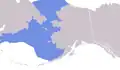 Coyotes have only been seen in Alaska since the early 20th century; they were originally reported in Southeast Alaska, but have expanded across the state. The state's coyote population peaked in the 1940s and has declined in many areas since. Coyotes are most common in the Kenai Peninsula, the Mat-Su Valley, and the Copper River Valley and are rare north of the Yukon River. In Alaska, coyotes' diets consist primarily of snowshoe hares, rodents, and carrion; predators of the young include great horned owls, bald eagles, and golden eagles; adults are preyed upon by wolves, bears and cougars. The state offered bounties for killing coyotes in the early 20th century (as did other states); the bounty program ended in 1969, and today a small number of coyotes are trapped in Alaska each year. Because coyotes are very secretive, they are rarely seen by Alaska residents.[12] | |