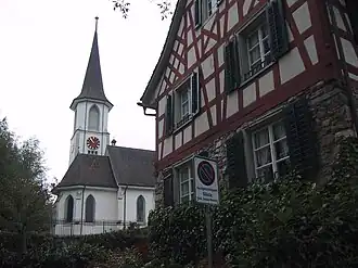 At sometime before 1275 St. Gallen Abbey, built the village a church. The rights to collect church taxes and appoint priests remained with the abbey until 1838 when those rights went to Canton of Thurgau. In 1843 that right went to the parish. The Protestant Reformation was introduced into the village in 1529. St. Gallen Abbey supported the Counter-Reformation through the investiture of Catholic judges. In 1749 the abbot of Rheinau Abbey, Bernhard Rusconi, built a baroque chapel near the castle. After the fire of 1909 destroyed the Simultankirche, in 1911 the Reformed church was dedicated followed by the Catholic Church in 1913.[3]
