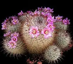 Mammillaria bombycina is one of many Mamillaria species to be cultivated, and is among the easiest.[5] In temperate regions it must be grown under glass with heat, preferably in full sun. It has gained the Royal Horticultural Society's Award of Garden Merit.[6][7] The plant can be grown from seeds which are collected from the ripe fruits.[8]