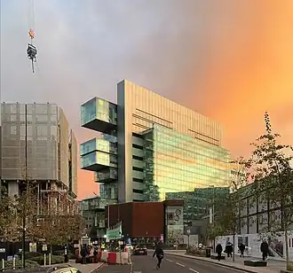 Construction began in 2003, funded by a £160 million public–private partnership deal between developer Allied London and the government.[11] The western side of the 80 metres (260 ft), 17-storey building faces the River Irwell. Its entrance opens onto Bridge Street.