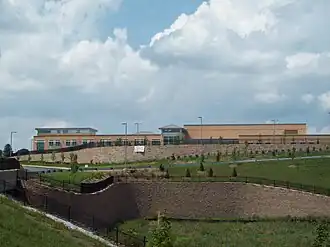 Manchester Valley High School was designed by Grimm and Parker Architects[3] and opened for students in August 2009 relieving overcrowding at nearby North Carroll High School in Hampstead, Maryland. North Carroll had approximately 1,600 students, however the building was designed with a student capacity of only 1,339. Manchester Valley accepted around 800 students from North Carroll, bringing their student population down to about 60 percent. A new school community boundary was created to decide how to split students from North Carroll to Manchester Valley. The school was designed to have a student capacity of 1,294 pupils for grades 9 through 12. In its first year of operations the school only accepted students in grades 9 though 11 allowing seniors to graduate with their peers at North Carroll High School. Its first graduating class was on June 1, 2011.[4] The school's first principal is Randy Clark who served as principal at Francis Scott Key High School in Union Bridge, Maryland before being selected for the job.