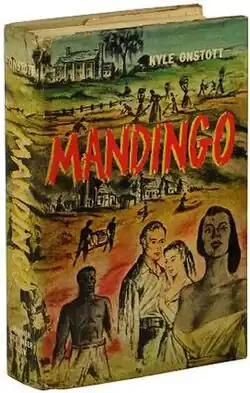 Tim A. Ryan echoes this statement, writing, "Kyle Onstott's sensationalist Mandingo (1957) turns the myth of Tara on its head with unashamed vulgarity."[20] And the myth extended beyond literature to real life beliefs about the Antebellum South. Smithers writes that "Two of the most enduring fictions to emerge in Lost Cause mythology were the trope of the chivalrous white southern male and the dutiful (and asexual) white woman."[21] That Onstott so thoroughly skewered these beloved beliefs of those who glamorized the Antebellum South shows how radical a novel Mandingo was, despite its flaws.