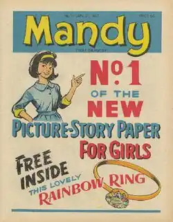 Mandy was a British comic book for girls, published weekly by DC Thomson from 21 January 1967 to 11 May 1991. The majority of the stories were serialized, typically into two or three pages per issue, over eight to twelve issues.