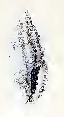 The length of this shell attains 5.5 mm, its diameter 2 mm.