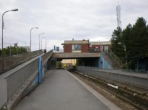 Manglerud is a rapid transit station on the Lambertseter Line of the Oslo Metro. It is served mainly by line 4 and by line 1 trains on weekdays between 06:00 and 19:00. It is located between Høyenhall and Ryen, 6.2 kilometres (3.9 mi) from Stortinget.