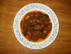 Avakaya (also known as mango pickle[3]) is a variety of Indian pickle popular in South India with its origin in Delta Districts of Andhra Pradesh. The main ingredients are mangoes, āvapiṇḍi (ఆవపిండి)(powdered mustard seeds) and a combination of other spices used for pickling. South Indians are known to have a deep attachment to these spicy pickles. A wide variety of pickles are available in these regions, using mango as their prime ingredient. Besides being made at home, the pickles are available commercially and are exported to the United States, Europe, Japan and many other countries.[4]
