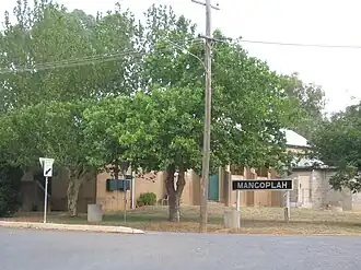 Mangoplah /ˈmæŋɡoʊplɑː/ is a town approximately 36 kilometres (22 mi) south of Wagga Wagga in the Riverina region of New South Wales, Australia. At the 2016 census, Mangoplah had a population of 309.[1] The name of the town is believed to mean "Kooris singing" in the Wiradjuri aboriginal language.[2]