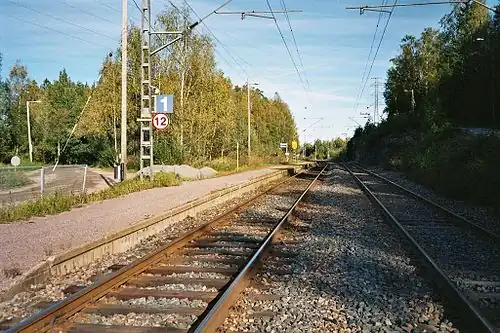 Mankki railway station (Finnish: Mankin rautatieasema, Swedish: Mankby hållplats) was a station on the VR commuter rail network located in Espoo, Finland, between the stations of Kauklahti and Luoma. The station had two tracks, with track one serving trains towards Kirkkonummi and the other towards Helsinki. The platform in the direction of Helsinki is a very rare wooden platform. Mankki was the least used station in the Espoo area, with only 60-100 passengers per day before its closure. Because of the very low number of passengers, the station was closed on 27 March 2016.[1]