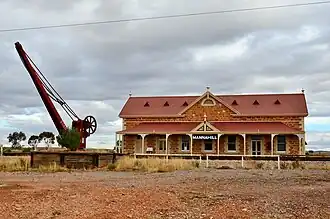 13. ^ "Mannahill Railway Station Building, Water Tank, Goods Platform and Crane". South Australian Heritage Register. Department of Environment, Water and Natural Resources. Retrieved 12 February 2016.