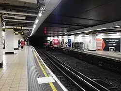 In 1897 the MDR obtained parliamentary permission to construct a deep-level railway running between Gloucester Road and Mansion House, beneath the existing sub-surface line. This new line was to be an express route using electric trains to relieve congestion on the sub-surface tracks. Mansion House was to be the terminus of the express route, with platforms 71 feet (22 m) below the sub-surface ones.[12] No immediate work was carried out on the deep-level line, and the subsequent take over of the MDR by the Underground Electric Railways Company of London (UERL) and the resignalling and electrification of the MDR's routes between 1903 and 1905 meant that congestion was relieved without needing to construct the deep-level line. The plan was dropped in 1908.[13]