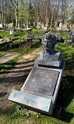 He died of cancer in hospital in the UK and his headstone is at Highgate Cemetery, a few meters away from Karl Marx's grave.