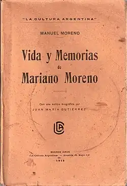 Manuel Moreno was born in Buenos Aires in 1781, and studied at "Real Colegio de San Carlos". He started to work in the colonial government by 1800, and joined his brother Mariano Moreno in his mission to London. However, Mariano died on board the ship, which inspired Manuel to write a biography of his life. He wrote them quickly, in order to be able to publish them in London, and used it as a force to promote the Revolution in Europe.