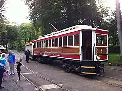 This was the second batch of cars delivered to the railway for its opening as far as Laxey Station in 1894. Referred to as "tunnel cars" because their seating was originally parallel to the sides with just one large passenger saloon, typical of early trams, as opposed to the more usual reversible seating common in tramcar layout.