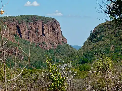 The park contains a mix of vegetation types representative of fynbos and forest systems, with half the park covered by Waterberg Moist Bushveld and 42% covered by Mixed Bushveld.[2] The 8-hectare Apiesrivierpoort Forest is found to the east of Tlopi Dam. The forest is mainly composed of Red ivory and African olive; other plant species found within the forest are:[3]
