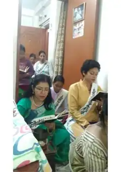 The Barua traditional marriage customs are influenced by local Bengali practices. They recognize two main ceremonies: Cholanta Bivaha, held at the bride's home, and Tokemanta Bivaha, conducted at the groom's home, with the latter being more common.[11] Certain months, such as Caitra and Paus, are considered inauspicious for weddings, possibly due to agricultural activities. Pre-wedding rituals include Alankar-Chadini (engagement), Gaye Holud (turmeric ceremony), and offerings to household deities. The wedding involves a Barjatri procession, monastic blessings, and protective chants. Social marriages are preferred, while divorce is rare but permitted. Polygamy and child marriage are prohibited, and interfaith unions are uncommon.[12][11]