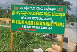 - From Bangalore the Temple located at a distance of 100km on Bangalore-Tirupati NH. After Mulabagilu it's around 4-5 kms. After Narasimhateertha proceed further on Tirupati Highway for about 1 km, on the left you can see the sign board "Abhayaprada Anjaneya Swamy Temple". Take a left turn just after the Sign board and reach the Temple after 2km.