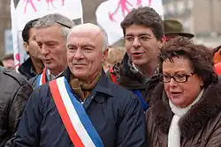 In April 2013, Le Fur was part of a demonstration in Paris against the legalisation of same-sex marriage in France. A video showed him trying to physically hold back National Gendarmerie personnel as they were attempting to remove protestors sat on the ground. After he failed, Le Fur knocked the hat off a gendarme's head.[6] He later stated he stayed until late in the night wearing his official sash to be recognisable as a deputy alongside other demonstrators to avoid the demonstration being the target of police violence.[7] Later that month, he was sanctioned in the National Assembly along with Yves Albarello and Daniel Fasquelle for their behaviour in Parliament.[8]