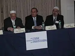 Sheikh Omar Abu-Namous, Rabbi Marc Schneier, and Imam Samer Alraey opening the U.S. national gathering of imams and rabbis on November 7, 2007, sponsored by Schneier's Foundation for Ethnic Understanding and the Islamic Cultural Center of New York in New York City