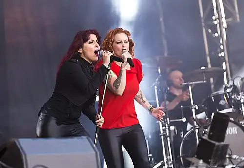 ![]() Bovio performing with The Gentle Storm at Wacken Open Air 2015 | |