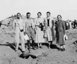 Her first important work was dedicated to the kites, professional mourners (always women) who were paid to lament loudly throughout the burial proceedings.[3][4][5] She became later interested in Pharaonic architecture during her study of the temple of Queen Hatshepsut in Deir el-Bahri.[6] Werbouck took part in many missions to the archaeological site of El-Kab in 1936-1937 and 1937-1938,[7] during which she contributed largely to the study of Egyptian divinities and more particularly the goddess Nekhbet.[8]