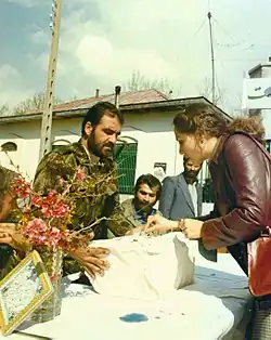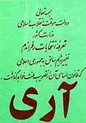 The People's Mojahedin Organization of Iran, the Tudeh Party of Iran, the Freedom Movement of Iran, the National Front, and the Islamic People's Republican Party, also "objected to the imposition of Khomeini's choice".[4] According to official results, it was approved by 98.2% of eligible citizens.[3][5] However, votes were color-coded and voting booths were lacking, explaining the unusually high approval rate.[6]