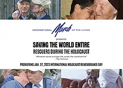 The film, shot on location on the March of the Living in Poland, draws on the most poignant moments captured between survivors and students since 1988. March of the Living Survivors featured in the film include Lillian Boraks-Nemetz, Judy Cohen, Max Eisen, Max Glauben, Bill Glied, Pinchas Gutter, Denise Hans, Anna Heilman, Mania Hudy, Max Iland, Howard Kleinberg, Nate Leipciger, Faigie Libman, Sol Nayman, Edward Mosberg, Irving Roth, Rena Schondorf, Albert Silwin, Stefania Sitbon, Sally Wasserman, Elie Wiesel, Helen Yurmas, Miriam Zacrojcyk, and Sidney Zoltak.[53][52] "Saving the World Entire: Rescuers During the Holocaust" (2023), directed by Naomi Wise, premiered on i24 News on International Holocaust Remembrance Day on 27 January 2023[54][55][56]