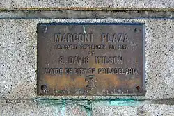 Marconi Plaza is an urban park square located in South Philadelphia, Philadelphia, Pennsylvania, United States. The plaza was named to recognize the 20th-century cultural identity in Philadelphia of the surrounding Italian American enclave neighborhood and became the designation location of the annual Columbus Day Parade.