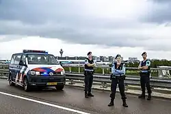 The Royal Marechaussee (Dutch: Koninklijke Marechaussee, abbreviated to KMar) also translated as the Royal Military Constabulary, is the national gendarmerie force of the Netherlands, performing military and civilian police duties. It is also one of the two national police forces in the Netherlands, alongside the National Police Corps, and is one of the four branches of the Netherlands Armed Forces.[2]