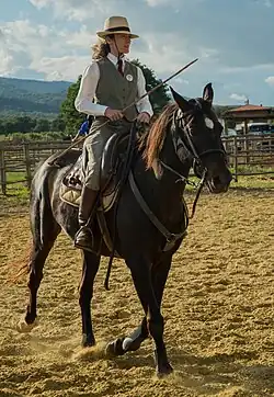 The Maremmano is the traditional mount of the Maremma cattle men, known as butteri, and is also used for light draft work.[1] Horses of this breed have often been used as cavalry mounts and today are used by Italian Mounted Police. They were amongst the protagonists of the last successful classical cavalry charge in history in August 1942 near Isbushensky on the Don river by a cavalry unit of the Italian Expeditionary Corps in Russia (Corpo di Spedizione Italiano in Russia, or CSIR) on the Eastern Front. The 2nd squadron of the 3rd Dragoons Savoia Cavalleria Regiment of the Prince Amedeo Duke of Aosta Fast (Celere) Division, armed with sabres and hand grenades, outflanked an estimated 2,000 Soviet infantry while the remainder of the regiment took Isbushensky in a dismounted attack, .[2][3] The Maremmano proved to be tough enough to brave the Russian steppe, a feat which few foreign horses can boast about.