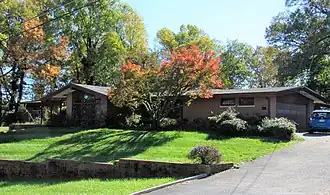 The Marenka House is a historic house at 7300 Radcliffe Drive in College Park, Maryland. Built in 1958, it is a distinctive local example of Modern Movement architecture. It is a single-story brick structure in a basically rectangular form, with a broad low-pitch gabled roof. It has projecting gable sections to the north and south, and an integrated garage. The front projecting gable has floor-to-ceiling windows in its center, and a deep projecting eave. Although its architect is unknown, it is considered one of the area's finest Mid-Century Modern houses, an application of Frank Lloyd Wright's principles of organic architecture.[2]