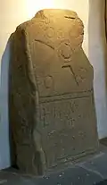 A stone slab showing a six-spoked 'cart-wheel' on the front and a linear 'ring cross' on the reverse. Although most linear crosses are dated rather earlier than the sculptured crosses, these are most likely to have been made at the same time.[1]