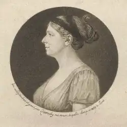 Marriage and motherhood did not temper her political radicalism. She attended the treason trials of John Horne Tooke, John Thewall, and Thomas Hardy in London in 1794, and in Dublin joined another of Lady Moira's bluestocking circle, the poet and satirist Henrietta Battier, in heeding the appeal in The Press for women to "act for the amelioration of your country in the mighty crisis that awaits her": she took the United Irish test.[12] Her mother's cousin, the United Irish leader Lord Edward Fitzgerald, and his wife Stéphanie Caroline Anne Syms were close friends. When, on the eve of the 1798 rebellion, Fitzgerald received a wound in the course of his arrest (which was to prove fatal), she intervened to prevent the news from reaching his pregnant wife, in the hope that his condition might improve and diminish the shock.[13]