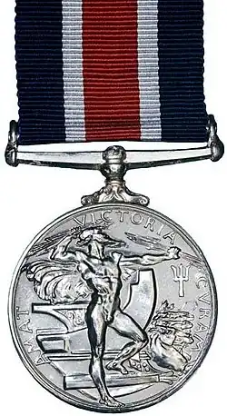 Winser also designed the reverse of the Naval General Service Medal, instituted in August 1915 and awarded for minor Royal Navy campaigns until 1962.[8]