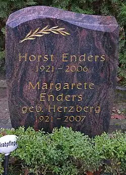 Herzberg was married with the author and playwright Horst Enders. Her grandson is the Kapellmeister Fabian Enders.[3] Enders, who kept her birth name Herzberg as a stage name during her active time, lived from 1963 until her death in 2007 at age 85 in Woltersdorf, Brandenburg. Her grave is located at the Waldfriedhof in Schöneiche.