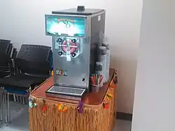 A margarita machine, also known as a frozen drink machine is a piece of commercial foodservice equipment which dispenses a frozen margarita. A margarita mix, traditionally lime flavored, is poured into the hopper,[1] which can be refrigerated, and may contain a spinning agitator. From the hopper, the product flows into the freezing cylinder, where it is frozen and kept at the proper viscosity to serve. The user is able to dispense margaritas from such a device for extended periods of time without losing any quality in the taste of the margaritas. A margarita machine may be purchased from a foodservice distributor and is manufactured by companies such as Spaceman USA[2] and Taylor Company.