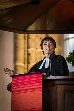 ![]() Käßmann preaching in Strasbourg, France, October 2015 | |