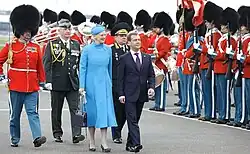 As sovereign, Margrethe received 42 official state visits and she undertook 55 foreign state visits herself. She and the royal family have made several other foreign visits.[23][24]