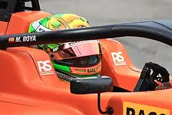 In the Barcelona sprint race, from third, Boya took advantage of a collision from the leading Trident cars. Despite a challenge from Alex Dunne, Boya persevered for his first F3 victory in his home race.[50][51] He would finish eighth during the feature race, but was penalised due to track limits and dropped to 14th.[52] However, this was followed by two rounds with no points owing to poor qualifying, until he scored a point again in the Budapest feature race.[53] Boya survived a chaotic sprint race in Monza to take seventh place, his final points finish of the season, as he retired in the feature race after contact with teammate Montoya.[54] The Spaniard finished his sophomore F3 campaign 15th in the standings with 45 points.[55]