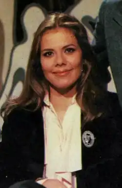 She was in charge of presenting, together with Miguel de los Santos, the 1977 OTI Song Festival, a television contest broadcast live for the Spanish-speaking countries that brought together more than 300 million viewers. She also presented the 1980 Eurovision Song Contest from The Hague, in which Spain was represented by Trigo Limpio.[2] That same year, TVE granted her hosting duties for their end-of-year special. And in 1981, she led the Benidorm International Song Festival.[3] But the most multitudinous television festival that Mari Cruz Soriano would present would be that of Hispanidad Day, broadcast live from Madison Square Garden in New York, and aimed at a potential audience of 500 million.