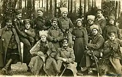 The rushed training of the battalion was led by twenty-five male instructors from the Volunskii Regiment of the Petrograd Military District.[6] The battalion was blessed at Saint Isaac's Cathedral on June 25, 1917. After a month of training, Bochkareva and her unit became attached to the First Siberian Corps and was sent to the Russian western front to participate in the Kerensky Offensive, where Bochkareva was promoted to the rank of lieutenant.[6] The unit was involved in one major battle—near the town of Smarhon. The women of the unit performed well in combat, but the vast majority of male soldiers, already demoralised, had little inclination to fight.[8][9] Bochkareva herself was wounded in the battle and sent back to Petrograd to recuperate.