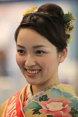 Born in Tokyo, she was a sales clerk before running in the pageant.