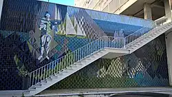 Another key aspect of her work, where she came to distinguished herself, was the azulejo tile. She began to explore this ouvre in the early 1950s. Keil became one of the main figures in the modernising of this traditional art form. The tile panel O mar, on Avenida Infante Santo, Lisbon, and the extensive collaboration with the Metropolitano de Lisboa (Lisbon Metro) is a highlight of her significant body of work in this genre.[7] Beginning in 1957, her work in the field would continue until c. 1972, with the decoration of the last stations of the first phase of the metro: Arroios, Alameda, Areeiro, Roma and Alvalade. Keil created the panels for all the initial stations with the exception of Avenida. From 1977, some of these panels were totally or partially destroyed, due to the expansion of several stations, including Saldanha, Restauradores and Intendente. In 1978 she participated in the travelling exhibition 5 Centuries of Tiles in Portugal (Rio de Janeiro, São Paulo, Brasília and Caracas). From then on, her work became a part of the main exhibitions (in Portugal and abroad) dedicated to the art of tiles in Portugal. In 1989, the Museu Nacional do Azulejo organized a comprehensive exhibition on this aspect of her work.[3]