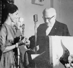 Tallchief's dancing was not confined to the stage. She appeared on multiple TV shows, including The Ed Sullivan Show.[4] She portrayed Anna Pavlova in the 1952 movie musical Million Dollar Mermaid.[5] In 1962, Tallchief was Rudolf Nureyev's partner of choice for his American debut, which was broadcast on national television.[15] Her final performance in America was on television's "Bell Telephone Hour" in 1966.[10]