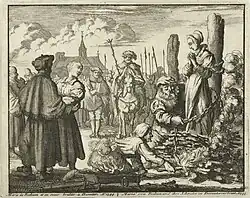 - ^ Braght, Thieleman J. van, Het Bloedigh Tooneel of Martelaers Spiegel der Doopsgesinde of Weereloose Christenen, Die om 't getuygenis van Jesus haren Salighmaker geleden hebben ende gedood zijn van Christi tijd of tot desen tijd toe, second edition, Amsterdam, Hieronymus Sweerts, 1685