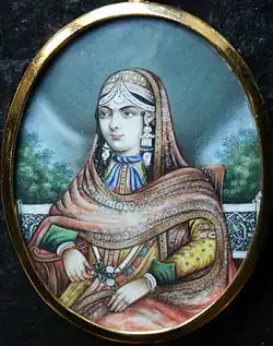 Mariam-uz-Zamani (lit. 'Mary/Compassionate of the Age';[5] c. 1542 – 19 May 1623), commonly known by the misnomer Jodha Bai,[6] was the chief consort, principal Hindu wife[a] and the favourite wife of the third Mughal emperor, Akbar.[7][8][9][10][11] She was also the longest-serving Hindu empress of the Mughal Empire with a tenure of forty-three years (1562–1605).[12][13]