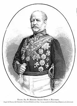 Mariano Téllez-Girón y Beaufort Spontin, 12th Duke of Osuna, GE, OM, LH, OAN, KA (19 July 1814 – 2 June 1882), was a Spanish peer, diplomat and army officer, whose lavish exploits as Ambassador of Spain to the Russian Empire earned him admiration and popularity amongst European courts. He was a younger brother of Pedro de Alcántara Téllez-Girón, from whom he inherited his 59 peerage titles when he died prematurely in 1844.[1]