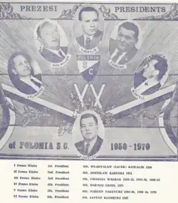 During its early years the club was fortunate to secure services of Zdzislaw Zabuski, an engineer and businessman, and the club's most loyal supporter, who provided employment for many of the Polonia players. His knowledge of local conditions proved extremely useful. Mr Zabuski was elected club President in 1951.