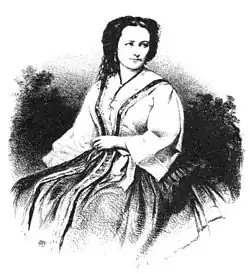 It was in Lyon that she was discovered by Jules Seveste, the director of the Théâtre Lyrique in Paris.[9] Seveste engaged her for the 1853–1854 season at his theatre, where she made her debut creating the role of Toinon in Adolphe Adam's Le bijou perdu on 6 October 1853. Fétis described her as "young, fresh, winsome, cheerful, having the devil of a body, lacking at the time taste and musical style, but blessed with an adorable voice, of a marvelous purity, whose brilliant and silvery timbre produced an amazing effect on the public, with which she launched the most difficult lines with amazing confidence and assurance…"[10] Georges Bousquet, writing in the Revue et Gazette Musicale of 9 October 1853, reported that the hit of the show was Cabel's performance of the aria "Ah! qu'il fait donc bon cueillir la fraise".[11] She became such a popular star that the company, located in the working class district of the Boulevard du Temple, began to attract a well-heeled audience, including Emperor Napoleon III and his new bride Eugénie de Montijo.[9]